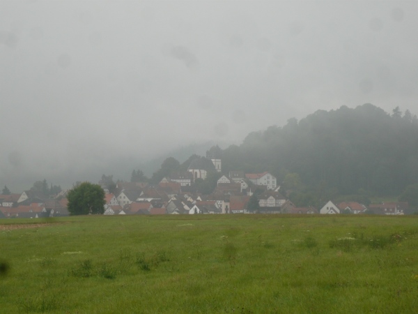 Nichts von dem steht heute auf dem Speisezettel. Bis zur ersten Versorgungsstelle in Albshausen könnten wir uns höchstens an ein paar unreifen Äpfeln laben. Über Felder geht es 2km abwärts. Bis wir ins 250 Seelen-Örtchen Albshausen kommen, haben wir so die gesamte gewonnene Höhe wieder eingebüßt. An den uralten Fachwerkhäusern kann man teilweise den Lehmschlag in den Fächern erkennen.