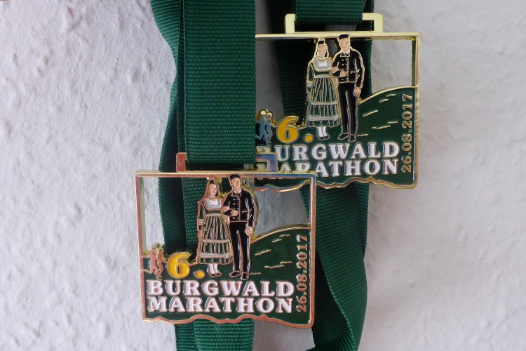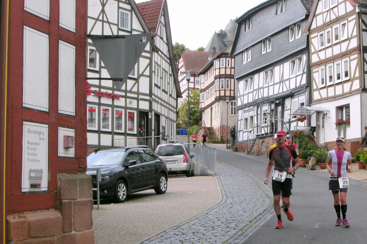 Highlight für mich waren die ersten 12 Kilometer mit der Mischung aus Trail und Straße, steil bergauf mit entsprechenden Gehpausen, und steil bergab einfach laufen lassen, das mag ich. Die Marathonstrecke dagegen ist eher für Straßenläufer, die sich gerne in der Natur bewegen. Tolle Gegend, durchaus hügelig, wird durch den Wechsel von Wald und Feld auch Abwechslungsreich in Szene gesetzt. Die Runde im eigentlichen Burgwald ist großartig.