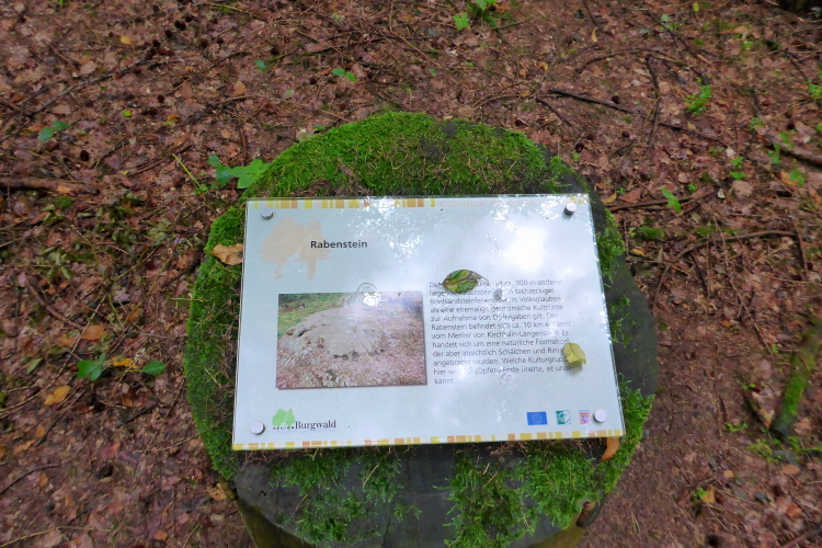 Burkhard kommt von hinten. Wir haben schnell ein Gesprächsthema gefunden. Leider ist er mir etwas zu schnell und ich muss ihn ziehen lassen. Links erscheint mitten im Wald ein alter Steinbruch. Es handelt sich um den Badenstein, einem für hiesige Verhältnisse ungewöhnlichen Basaltdurchbruch. Angeblich hat man mit 200 Wagenladungen Steinen vom Badenstein die Straßen in Rosenthal ausgebessert. Der Steinbruch wurde 1830 geschlossen.