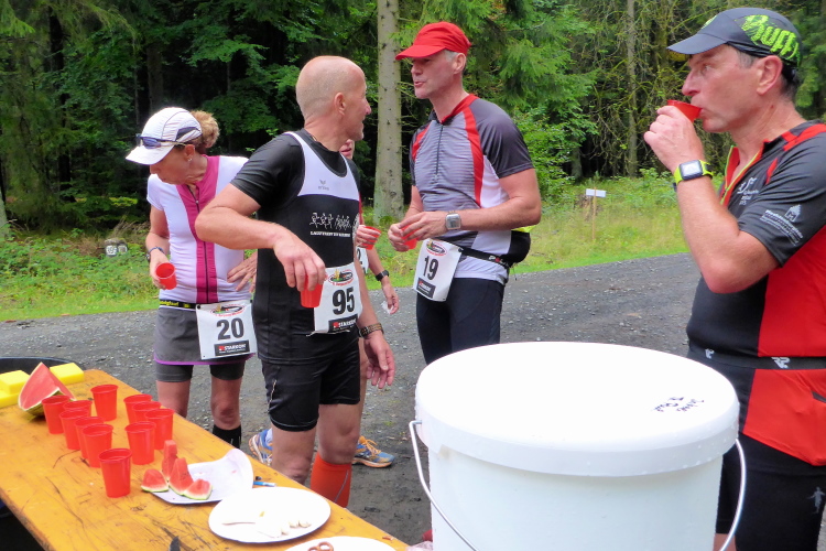 Die Verpflegung ist gut, beim Ultra wären vielleicht zusätzlich Iso und leichte Kohlehydrate an den ersten VPs zu überlegen. Die Orga beeindruckt mich durch sehr gute Vorbereitung, z. B. bei der Streckenmarkierung und ihrer nicht alltäglichen Flexibilität. Die Helfer sind allesamt herzlich und gut gelaunt.