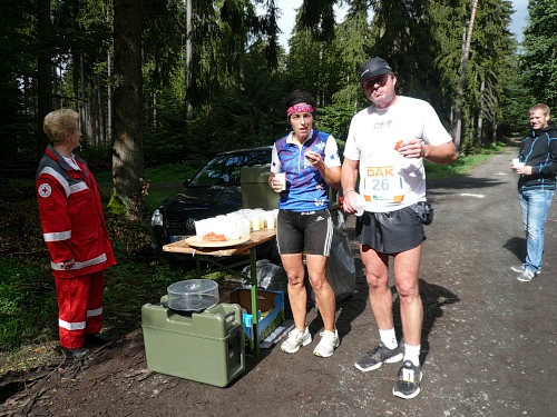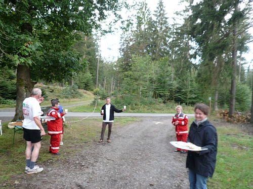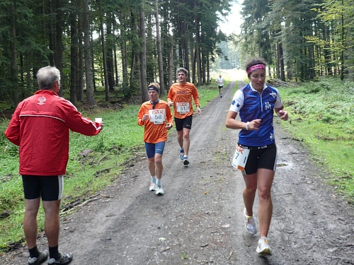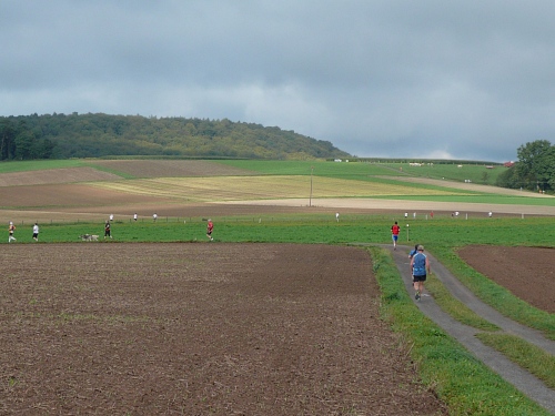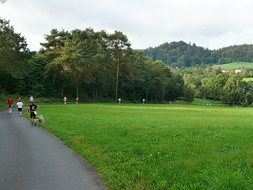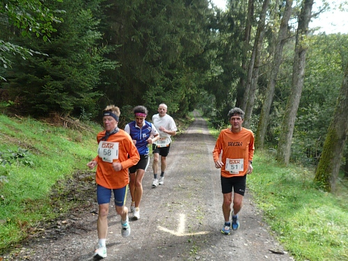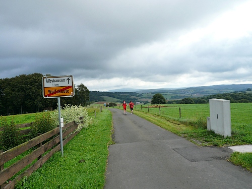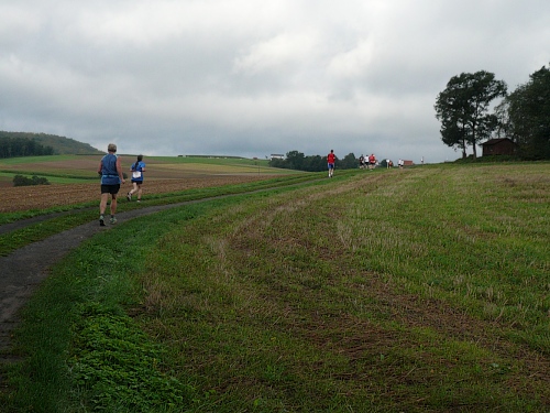 In Albshausen haben wir schon km 6 und den ersten VP erreicht. Hier betreten wir den Burgwald. Der Burgwald ist nachts stockdunkel. Merkwürdigerweise treffen sich Hobbyastronomen regelmäßig oben auf den Plateaus der Berge, auf den Ruinen der Keltenfestungen, um die Sterne zu beobachten. Angeblich gäbe es hier kein Streulicht einer Stadt, welches den Blick in die Unendlichkeit trüben würde.