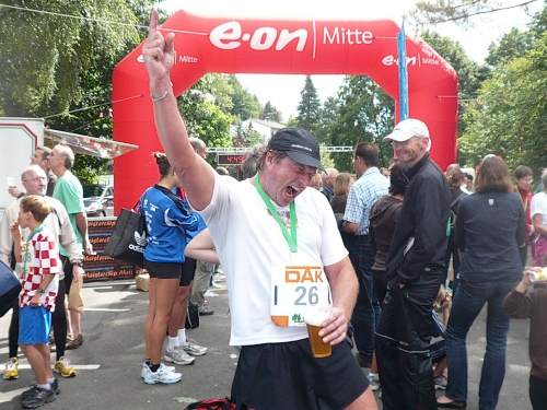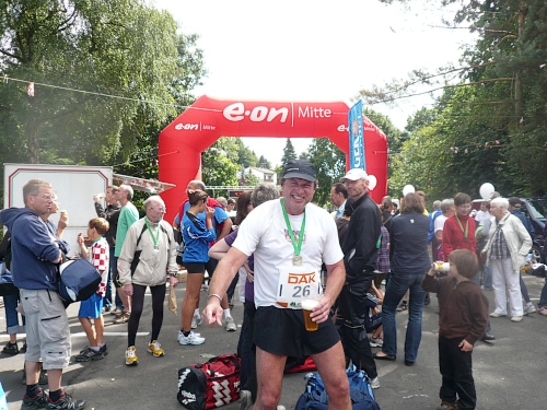 Die Laufstrecke hatte nur 400 Höhenmeter, doch merkwürdigerweise komme ich total fertig ins Ziel, als hätte mir ein Riese einen Stein in den Nacken gedrückt.