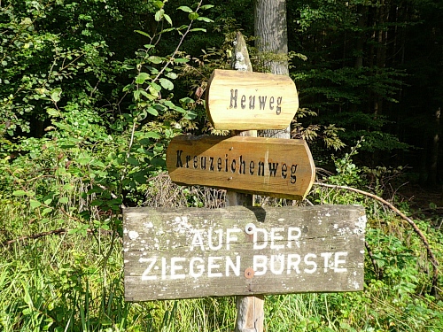 Auch hier in den Franzosenwiesen wurden bei Ausgrabungen Spuren eines steinzeitlichen Lagerplatzes gefunden. Merkwürdige Schilder: Naturschutzgebiet! Gefahr! Als würde es sich hier um einen Truppenübungsplatz handeln. Mir ist so schaurig zumute...