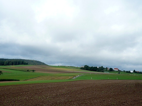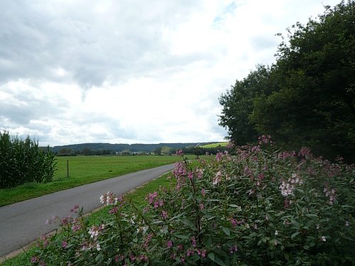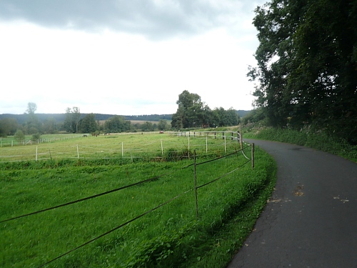 Links das kleine Örtchen Bracht. Dort wurde ein Dorf aus der Bandkeramikzeit (3500v.Chr., also vor den Kelten) ausgegraben. Der Standort des mytischen Heidenstein darf merkwürdigerweise nicht bekannt gegeben werden.