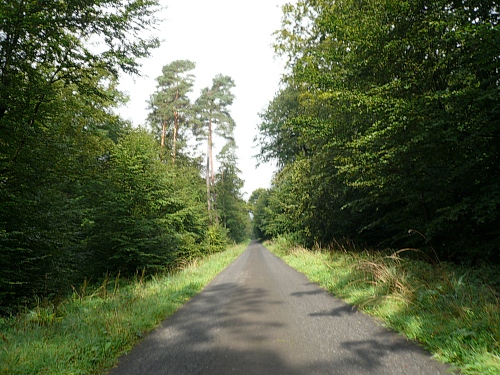 Rechts der Abzweig zu den „Heiligen Eichen“, gepflanzt zur Erinnerung an die Völkerschlacht bei Leipzig. Links oben der Elbesberg. Dort befindet sich der Rabenstein. In diesem Stein sind sehr merkwürdige Schälchen und Rinnen angebracht, eine blutige Opferstätte aus grauer Vorzeit. Man munkelt, ab und zu würden noch Blutstropfen aus dem Stein herausfallen.