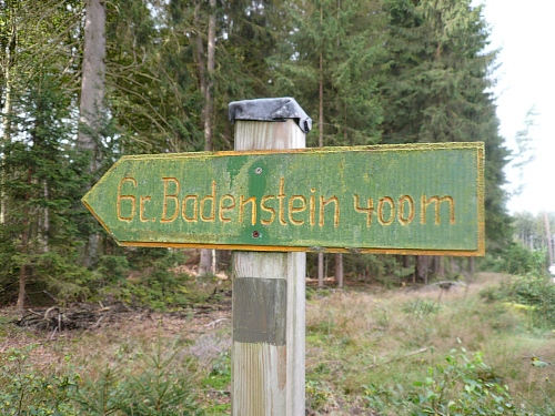 Ein kilometerlanges Begegnungsstück, auf dem ich merkwürdigerweise niemandem begegne, dann biegen wir ab zum Badenstein. Wer genau hinschaut, erkennt die sagenumrankte Herrenbrücke, die aus den Resten zweier merkwürdiger steinernen Türme mit gemauerten Schießlöchern gebaut wurde. Warum nur hat man diese zwei Schießhäuser abgerissen?
