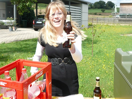 Bei km 36 erwartet mich meine Eigenverpflegung. Merkwürdigerweise ist das Bier eiskalt, als käme es aus einem der Geheimgänge, die von der schaurigen Schloßruine bis hierher zur Fiddelmühle führen. Mühlen waren seit jeher verruchte Plätze. Außerhalb der Stadtmauern wurden nicht nur Körner gemahlen, sondern auch dunkle Geschäfte abgewickelt. Mir fällt auf, dass sich zahllose Jungfrauen um die Pferde in den Ställen kümmern müssen.