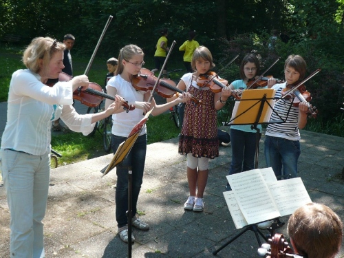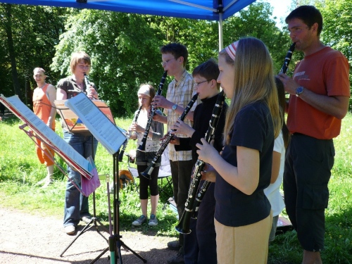 Im Start- und Zielbereich gute Stimmung. Sehr viele Musikdarbietungen im Park.