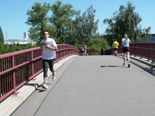 Ich spule meine restlichen Runden nun gleichmäßig herunter, auch wenn es in der letzten aufgrund der Wärme hart wird. Lieber hätte ich mich da zu den zwei Bikinischönheiten im Park hingelegt und denen Gesellschaft geleistet.