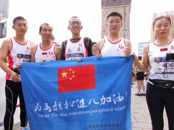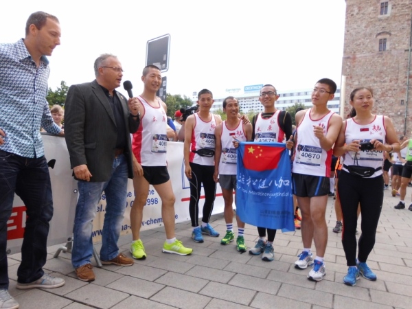 Taihuan ist Partnerstadt von Chemnitz und die chinesischen Teilnehmer weilen über ein Austauschprogramm in der sächsischen Stadt. Eine feine Sache. Schade, dass ich nicht in Chemnitz wohne, ich wollte schon immer mal in China laufen.