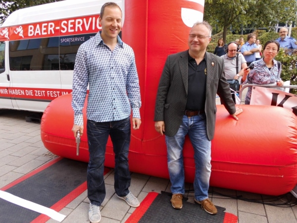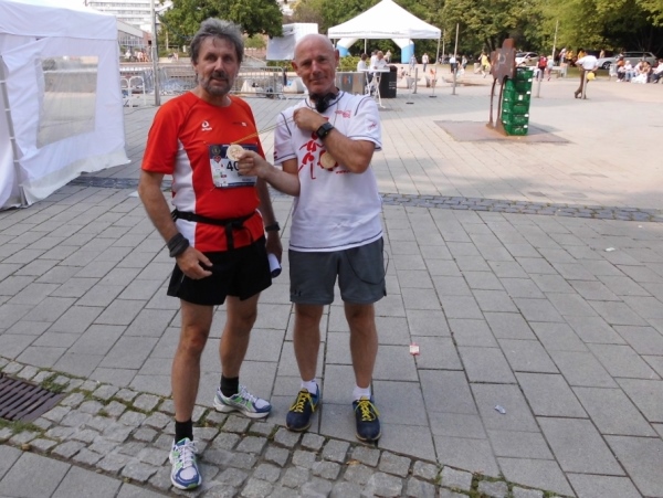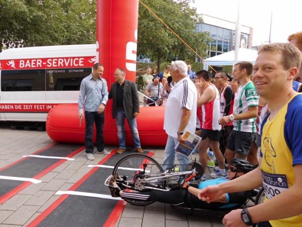 Vernünftig sind die Veranstalter. Sie lassen Gnade vor Recht ergehen. Man ist zwar schon mit dem Abbau beschäftigt, aber meine Zeit wird noch gewertet. Nur - wo sind die Medaillen? In so einem Fall ist es wichtig, Freunde zu haben. Dieter Fromme kommt mir entgegen – eine Medaille vor der Brust, eine in der Hand.