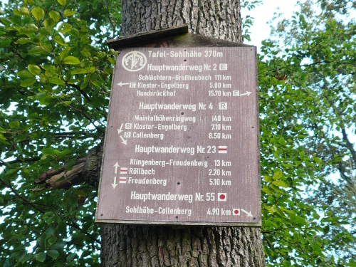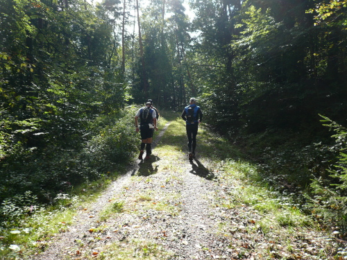Wir liefen nun zunächst auf gut zu laufenden Waldwegen bergab in Richtung Röllbach. Leicht wellig wurden wir am Rande von Röllbach entlang geführt, bevor es auf befestigten Wegen in den Klingenberger Wald ging. Zum Teil steile Bergabpassagen erforderten die gesamte Konzentration und Koordination.