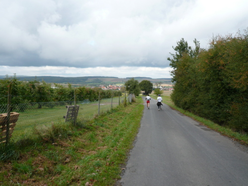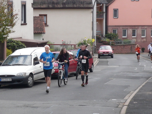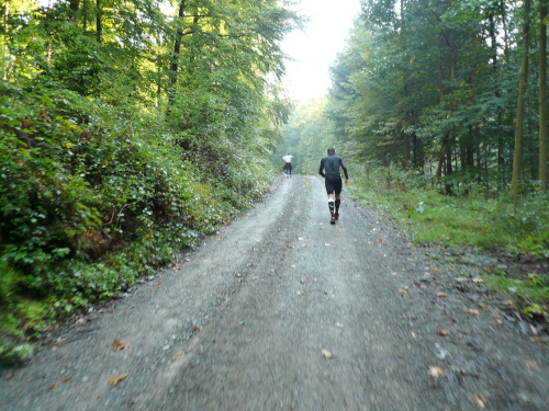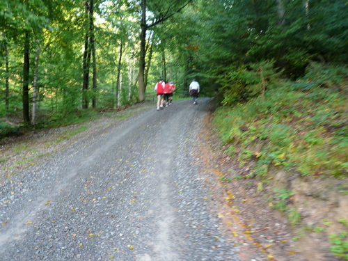 Unmittelbar nach der Wechsel- und Verpflegungsstelle ging es unerbittlich bergan. Zunächst auf Asphaltstraßen durch das Wohngebiet von Collenberg, später auf befestigten Waldwegen für fünf Kilometer etwa 400 Höhenmetern bergauf.