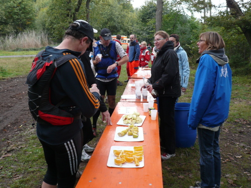 Die Verpflegungsstellen, die alle rund fünf Kilometer platziert waren, boten, wie bereits erwähnt, alles was man sich wünschte und die Helfer waren stets freundlich und hatten immer ein aufmunterndes Wort. Zuschauer sind, wie bei solch einer Veranstaltung üblich, nur vereinzelt, meist an den Wechselstellen vorhanden. Aber auch bei der Passage der einzelnen Ortschaften wurden wir freundlich angefeuert. Die Feuerwehren mit der Streckensicherung und die Sanitätskräfte sorgten für die Sicherheit der Läufer.