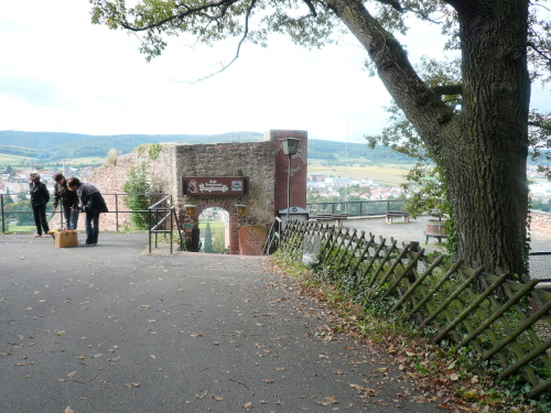 Nach einem weiteren Singletrail erreichten wir ein breites Asphaltband, das uns entlang der Weinberge um Klingenberg zum nächsten Etappenziel auf der Clingenburg führte. Die Wechselzone und die Verpflegung waren im Innenhof der Reste dieser altehrwürdigen Burg untergebracht.