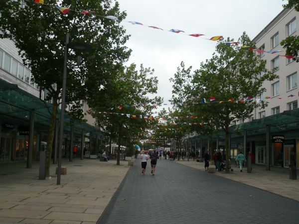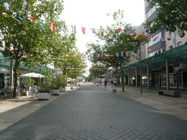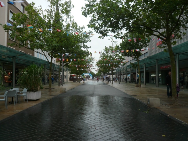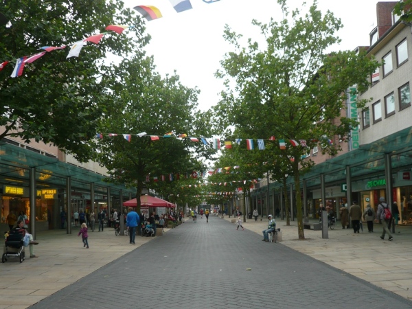 Kurz nach dem Start geht es auf der Bürgermeister-Smidt-Straße sehr eng zu, denn viele rennen los, als gäbe es eine 100m Wertung. Die gelasseneren Marathonis haben sich hinten eingereiht, denn es gibt ja eine Netto-Zeitmessung mit dem Chip an der Startnummer. Die Strecke führt durch die Fußgängerzone.