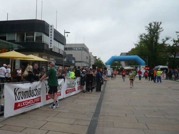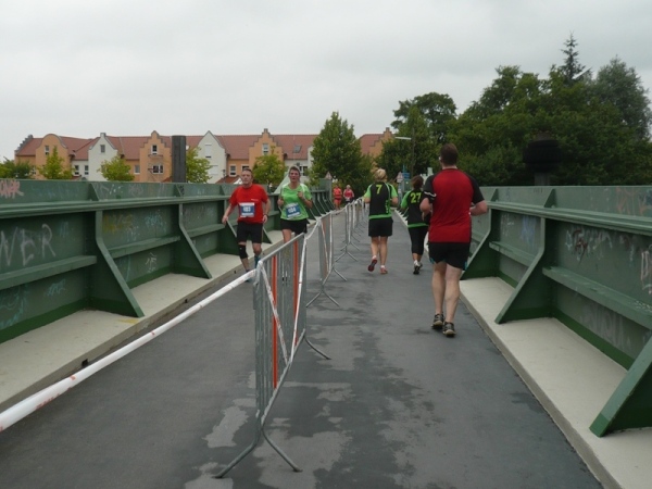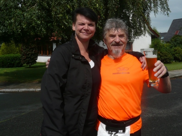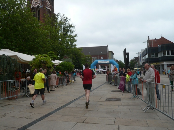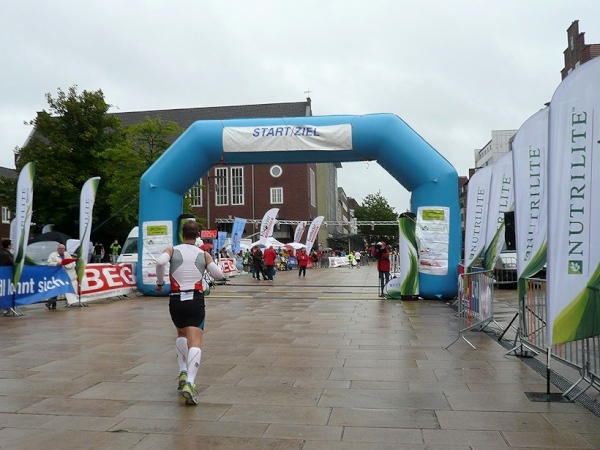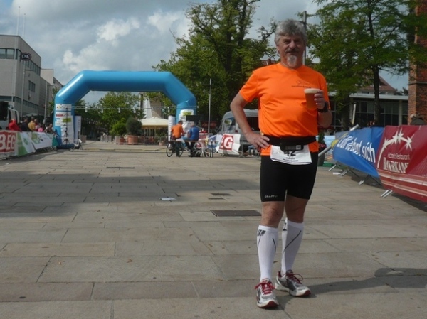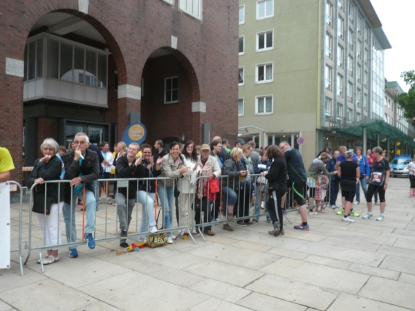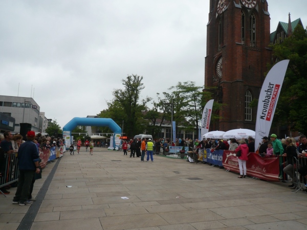 Noch einmal ins Kapitänsviertel. Auch hier halten die Anwohner durch und bieten Wasser an. Dann die Brücke hin und zurück. Es ist nicht mehr weit zum Ziel. Im schönstem Sonnenschein laufe ich in die Fußgängerzone und durchs Ziel. Artur erzählt unermüdlich seine Storys.
