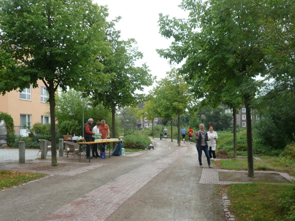 Jetzt noch zur Nachversorgung. Das alkoholfreie Weizen gibt es noch, aber wo ist der versprochene Butterkuchen. Noch bevor die letzten Läufer eintreffen, hat man ihn an Passanten verteilt.