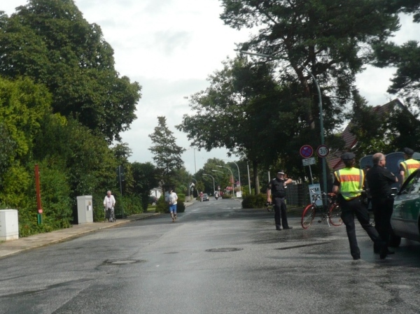 Ein Polizist hat einen Radfahrer angehalten, macht ein Protokoll und ein Foto von dem Gewährt. Als ich das Ding sehe, muss ich es auch knipsen. Allerdings muss ich aufpassen, dass ich vor lauter Lachen das Bild nicht verwackele.