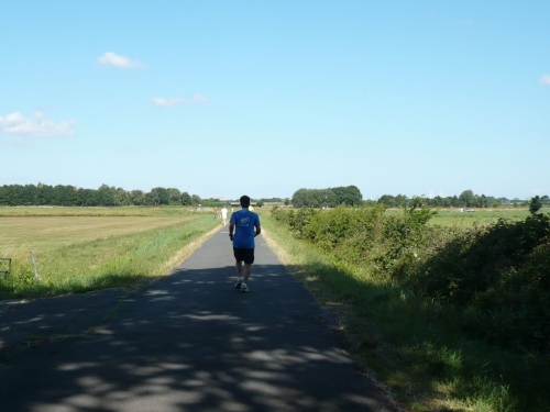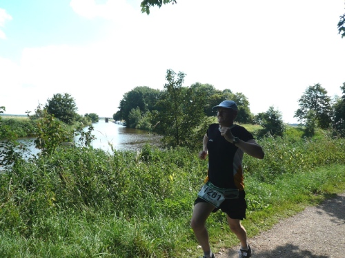 Hinter km 30 komme ich ins Gespräch mit einem Streakrunner (Streakrunner sind Läufer die täglich laufen, mindestens 2km pro Tag am Stück). Frank ist schon über 300 Tage dabei und seine ihm folgende Begleitung Sarah aus Kiel ist schon über 400 Tage am Laufen.