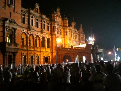Das Startgelände befindet sich direkt vor der City Hall, dem Rathaus von Pietermaritzburg. Die 1839 von Buren, den sog. „Voortrekkern“, gegründete Stadt ist zwar Hauptstadt bzw. Verwaltungs- und Parlamentssitz der Provinz KwaZulu-Natal, mit ihren etwa 300.000 Einwohnern im Vergleich zur 3 Millionen-Metropole Durban allerdings ein vergleichsweise beschaulicher Ort. Die koloniale Vergangenheit ist zumindest architektonisch gerade in der Innenstadt noch recht präsent. Das 1893 aus roten Klinkern errichtete Rathaus im victorianischen Baustil mit seinem 47 m hohen Glockenturm ist ein besonders schönes Relikt aus dieser Zeit und Wahrzeichen der Stadt. Das Licht der Scheinwerfer bringt die Fassade vor dem schwarzen Nachthimmel besonders schön zur Geltung.