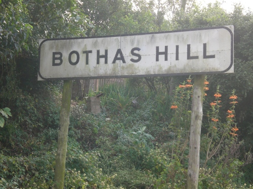 Bothas Hill ist wie der Eintritt in eine andere Welt - eine primär weiß geprägte Welt. Kaum zu glauben, dass die Armut der Harrison Flats nur ein paar Kilometer entfernt liegt. Hier scheint nichts die heile Welt zu trüben. Propere gepflegte Anwesen in üppiger Natur reihen sich aneinander. Eine Allee knorriger alter Bäume bildet über der Straße ein natürliches Dach. Am Ortseingang stehen und sitzen aufgereiht und ordentlich in blaue Schulanzüge gekleidet die Schüler des Kearnsey College und erheben sich, wenn ein ehemaliger Schüler, einen roten Luftballon haltend, vorbei läuft. Ein deutschsprechender Südafrikaner, natürlich wiederum langjährig Comrades-erfahren, erzählt mir dies. Von einem wartenden Freund bekommt er jedes Mal einen solchen Ballon, obwohl er nie an der Schule war, nur um seinen Spaß daran zu haben, dass alle wegen ihm aufstehen müssen.