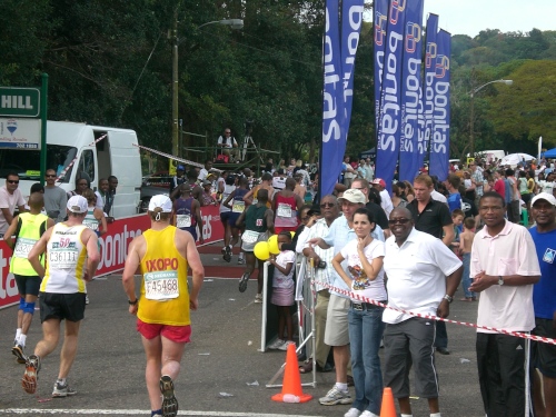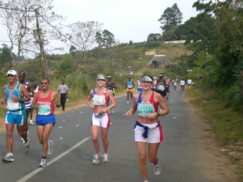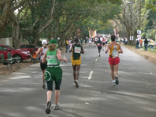 Seit Bothas Hill geht es tendenziell - wenn auch immer wieder mit Gegenanstiegen - leicht bergab. Dies und die Stimmung an der Strecke machen das Laufen überraschend leicht.