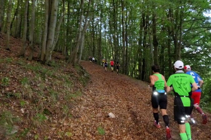 Plötzlich gabeln sich die guten Wege und in der Mitte, kaum erkennbar, führt ein Trail in der Direttissima nach oben. Zumindest fast. Wären da nicht die Spuren des Quad von heute Früh, ich hätte nicht geglaubt, dass das unser Weg ist. Alte Regel: Niemals beim Aufstieg anhalten! Augen zu und hoch! An der Gipfelstraße wird es (nur ganz kurz) etwas flacher, dann aber geht es weiter hoch, Treppenstufen helfen dabei. Ein Treppentrail mit Wurzeln und Steinen. Und plötzlich – der Parkplatz, der VP, die Rettung…