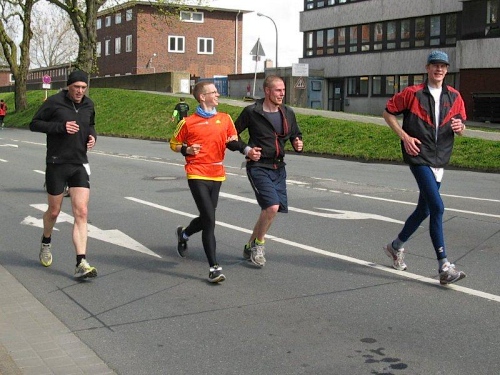 Am Ende der Runde durchlaufen wir wieder den Kämmererplatz und nun sind auch die 30 Kilometerläufer im Ziel. Einige von ihnen haben heute wohl noch einen Testlauf für den Marathon in Hamburg gemacht.