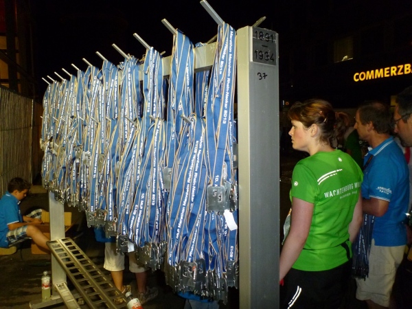 Mir wird eine Medaille umgehängt. Im Verpflegungsbereich erhalten wir alles, von Wasser bis Cola, von Kuchen und Hefezopf bis hin zum kastrierten Bier und gscheiten Hopfentee.