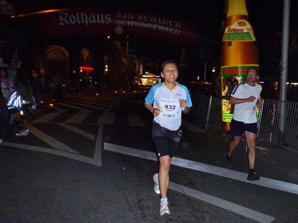 Ich laufe durch das grüne Tor der Bäume, alles ist total anders. Vorher still, ruhig, jetzt Lärm und tobende Zuschauer, Musik, Bierbänke links und rechts, Streckenfest. Das Feld zieht unmerklich das Tempo an. Viele Kinder halten ihre Hände für ein Abklatschen hin. Meersburger Straße, Kapellenplatz oder Badener Straße, fast jeder Anwohner steht an der Strecke und macht Lärm. Du musst dich fast bremsen, nur nicht das Tempo überziehen. Aber Spaß macht es bei diesem Zuspruch schon.