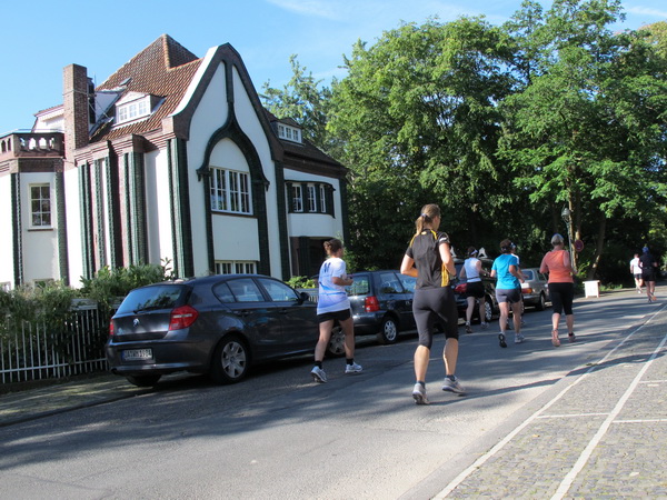 360 Läuferinnen und Läufer hat alleine der Pharma-Riese für diesen Lauf mobilisiert. Eine gute Sache für alle. Immer mehr Firmen nutzen ja Laufveranstaltungen zu einer Art Betriebsausflug mit VIP-Betreuung. Manche Laufschuhe und –Klamotten sehen noch verdächtig neu aus und ich vermute mal, einige dieser Firmenläufer haben zum ersten Mal einen Chip am Schuh. Dass man in der Pharmabranche gut verdient, verrät das Equipment ebenfalls. Kein Neid, weiter.