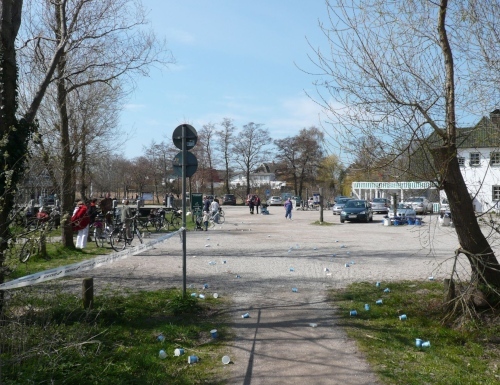 Hier im Ort gibt es ein grobes Kopfsteinpflaster und ich laufe lieber rechtsseitig auf dem Bürgersteig, denn bei diesem Pflaster ist es nicht ratsam die Seite zwecks Innenradius zu laufen. Lieber ein paar Meter mehr laufen aber nicht umknicken ist die Devise. Neben dem Foto Km 36 sieht man das Geholpere der Straße.