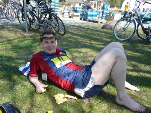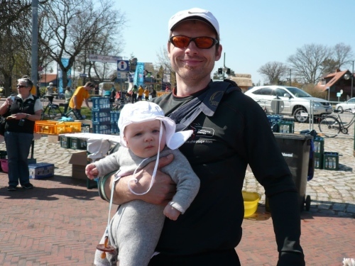 42,2 km sind wieder geschaff. Es gibt eine schöne Medaille aus Ton. Heute geht es mir gut im Ziel und ich knipse noch so manch schönes Bild vom „Läufer danach“. Nicht zu vergessen die drei Damen aus Mölln ( Die Eulenspiegelstadt im Kreis Herzogtum Lauenburg – Schleswig-Holstein), die mehrfach an der Strecke standen für ihre Männer Jochen, Ralf und Reinhard, aber auch allen anderen Läufern zujubelten.