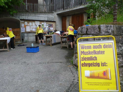Wer einen ehrgeizigen Muskelkater schon hat, der kann in einer Hofeinfahrt etwas dagegen unternehmen lassen. Die drei, vier Liegen sind belegt, das Personal hat gut zu tun. Habt Ihr gewusst, dass hier in unmittelbarer Nähe auf einer Alm die Heidifilme mit dem Alpöhi und dem Geissenpeter gedreht wurden?