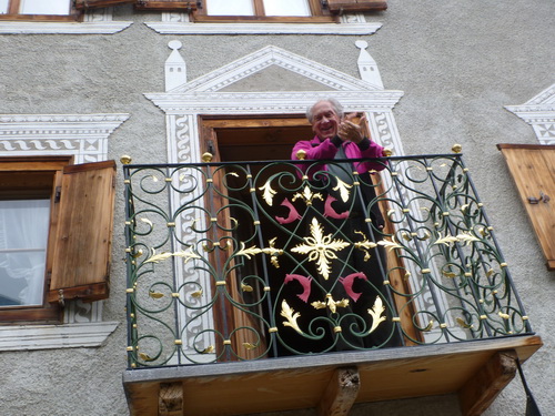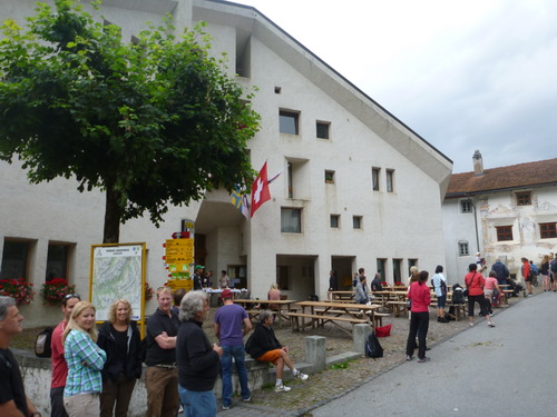 „Spina grüßt Euch“, so werden wir in dem Weiler mit Fahnen, Wimpeln und Kuhglockengeläut willkommen geheißen. Abermals Verpflegung fassen ist die Devise, und schon haben wir den freundlichen Ort auf einem befestigten Weg verlassen.