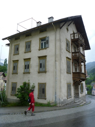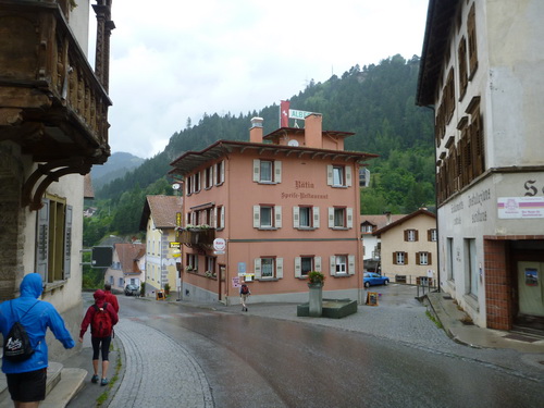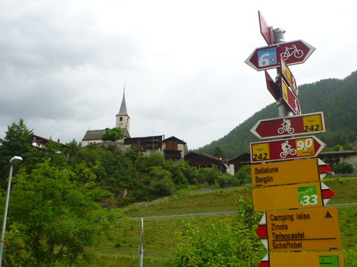 Herzlich Willkommen in Tiefenkastel (890 Meter), so werden wir an der Schule begrüßt. Gerade rechtzeitig, denn nach wenigen Minuten fängt es zu Regnen an, auch einige Blitze sind zu sehen. Für eine Dorfbesichtigung fehlen mir Zeit und Lust, denn der Regen lässt auf dem Weg zum Bahnhof nicht nach. Das wird nachgeholt, versprochen.