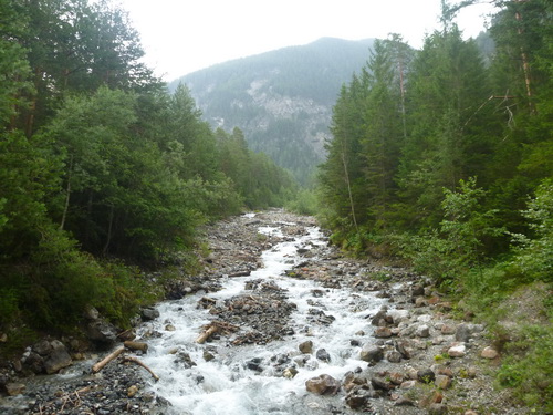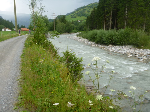 Rechter Hand fließt die Landwasser, ein rund 30 Kilometer langer Fluss, der in seinem Verlauf mehrmals für eine Stromgewinnung gefasst wird.