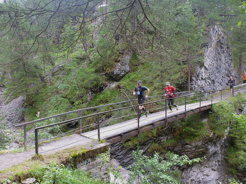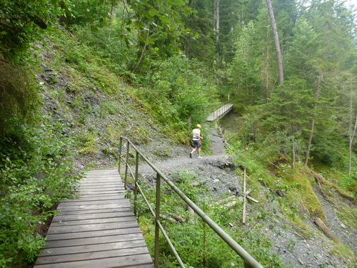 Tendenziell ansteigend, immer am Hang entlang, verläuft der Kurs durch den Rotschwald zum Rotschtobel (Kilometer 15) auf knapp 1700 Meter Seehöhe. Immer wieder zeigen sich großartige Ausblicke auf die gegenüber liegende Berge.