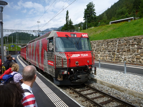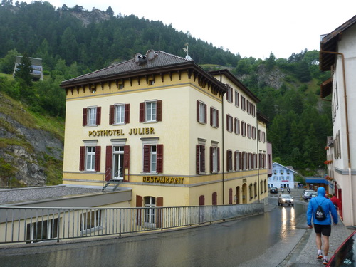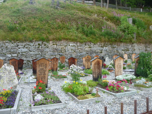Filisur (1032 Meter) ist eine eigenständige Gemeinde mit knapp 500 Einwohnern. Erstmals wurde es als villa Fallisour im Jahr 1262 erwähnt. Wir durchlaufen den Ort mit seinen im Engadiner Baustil erbauten Häusern. Es hat zwei Minuten vor 10.00 Uhr. Gut und reichlich verpflegen und dann weiter, heißt es für mich.