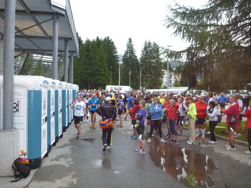 Meine Startunterlagen erhalte ich im Kongresszentrum in Sekundenschnelle. Die Zeitnahme geschieht wie üblich mit mika-timing. Wer keinen gelben Chip hat, der muss sich halt einen ausleihen. Auf der Laufmesse können noch günstige Schnäppchen (zumindest für an höhere Kosten gewohnte Eidgenossen) gemacht werden. Die Wettervorhersage für den Laufwettkampf ist nicht gerade günstig. Wechselhaft mit gewittrigen Schauern, das ruft bei mir keine großen Sorgen hervor, ich muss ja nicht auf den Berg.