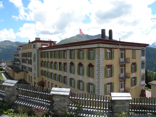 1900 eröffnet, war die Schatzalp ein echtes Juwel, ein Luxussanatorium neben 23 (!) anderen unterschiedlicher Klassen in Davos zur Heilung Tuberkulosekranker. Infolge der verbesserten Heilungsmethoden und insbesondere der Erfindung des Penicillins Anfang der 50er Jahre war die Geschäftsgrundlage für die meisten Sanatorien, so auch der Schatzalp, entfallen und man wandelte sie in Hotelbetriebe um. Davon profitieren wir noch heute, sehr viel ist noch im Originalzustand erhalten, die einzigartige Lage im Sonnenhang über Davos macht sie fast zu einem Muß, auch in der Vorbereitung auf den Swissalpine.