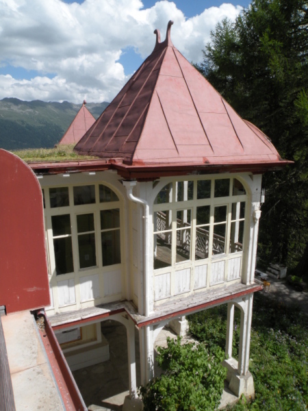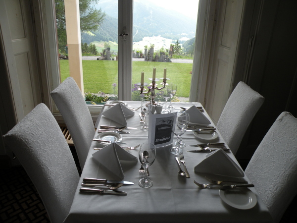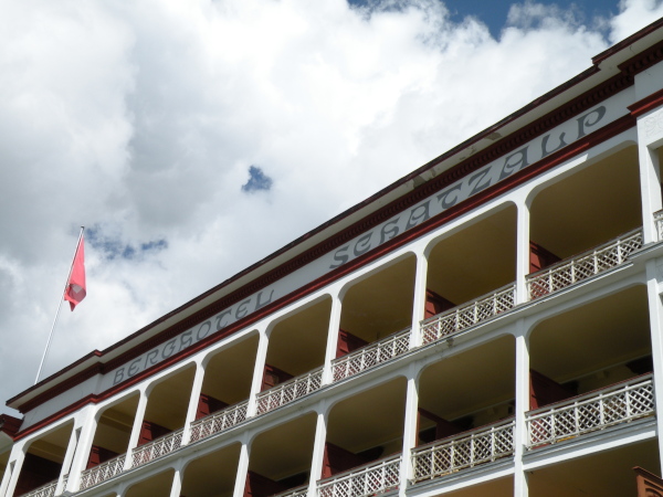 Hans Castorp, der Hauptfigur aus Thomas Manns Bildungsroman „Der Zauberberg“ (den ich tatsächlich, allerdings unter Aufbietung größten Durchhaltevermögens, komplett gelesen habe) folgend, mieten wir uns im Berghotel Schatzalp, 300 HM über Davos, ein, genießen dessen etwas morbiden Charme und lassen uns lecker bekochen. Hans traf dort jede Menge weltentrückte Personen, darauf habe auch ich mich eingestellt. Er gewinnt den Eindruck, daß Krankheit den Menschen vergeistige und veredele, während Personen von robuster Gesundheit zu einer gewissen Einfalt neigten. Na prima, schon bin ich entlarvt.