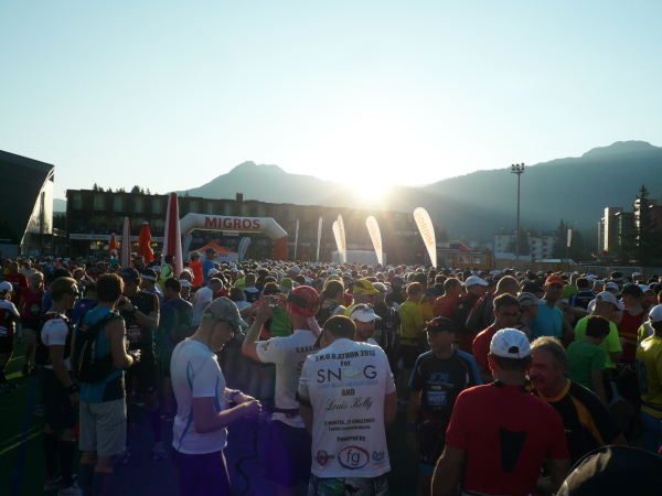 Schrecken mich die heute zu absolvierenden 77,5 km? Müßten sie eigentlich, tun sie aber nicht. Wie vor drei Jahren in Biel bin ich bis zur Oberkante Unterlippe voll Adrenalin und vom Erfolg überzeugt. Positive Affirmation nennt man das, Norman Bücher predigt sie. Ohne Zweifel sind das gute Voraussetzungen, die mich hoffentlich über die zweitlängste je von mir gelaufene Strecke tragen werden. Denke ich allerdings z.B. an den kürzlich bei uns durchgeführten WiBoLT, Germaniens längsten Non-Stop-Landschafts-Ultratrail über den kompletten Rheinsteig von Wiesbaden nach Bonn (320 km, 11.700 HM) relativiert sich das hier zum Kindergeburtstag. Aber auch ein solcher kann, wie wir erfahrenen Eltern wissen, ganz schön anstrengend werden.