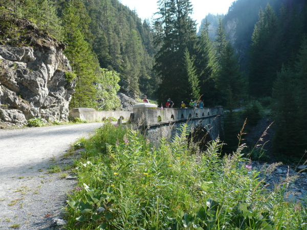 Parallel und unter der Eisenbahnstrecke sehen wir in der Zügenschlucht einige wahrscheinlich uralte, in den Fels geschlagene Tunnel. Ein paar davon dürfen wir durchlaufen, andere sind wohl einsturzgefährdet und daher gesperrt. Sehr schön sind auch die Viadukte der Eisenbahn, die wir wiederholt unterqueren, immer wieder bieten sich uns tolle Eindrücke. „Sind Sie der Ansicht, Herr Orlinger, daß der Herr Duwe dieses von Ihnen soeben aufgenommene Bild veröffentlichen wird?“ Herbert und ich lachen uns scheckig, als wir uns zufällig treffen, er ist heute für den C42 zuständig und eine Zeitlang bleiben wir zusammen.