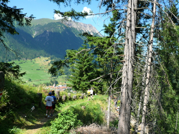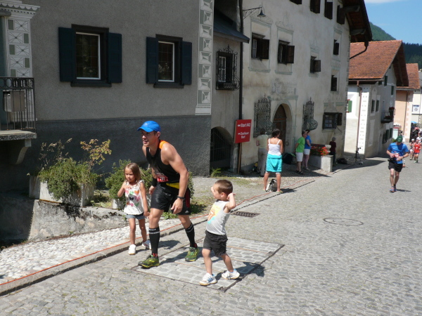 Bergün ist ein malerisches Dorf mit imposanten, teils mehr als 500 Jahre alten Wohngebäuden. Besonders beeindruckend ist auch der Platzturm (ehemals herrschaftlicher Amtssitz) aus dem 13. Jahrhundert. Jede Menge ist hier immer noch los, selbst nachdem die zwei Wellen des K42 bereits gestartet worden sind. Lautsprechermusik, Anfeuerungen, toll ist es. Da rappelt man sich doch gleich nochmal auf, läuft die steile, gepflasterte Hauptstraße mit federndem Schritt nach oben, um nach der Linkskurve und damit aus der Sicht der meisten Zuschauer heraus sofort wieder ins Gehen zu verfallen.