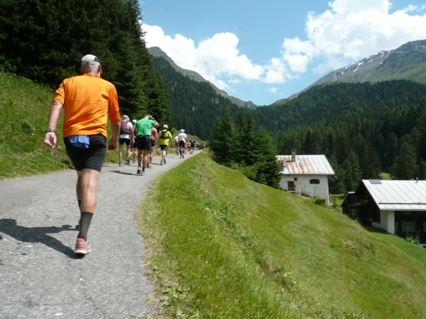 In Filisur, nach knapp 30 km, haben es die K30er schon geschafft, ich habe hierher 3:16 Std. benötigt. Erste Zweifel bezüglich meiner Zielzeit machen sich breit.