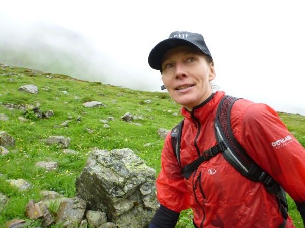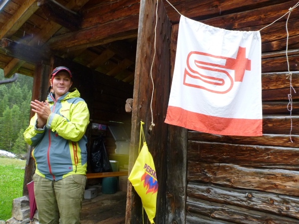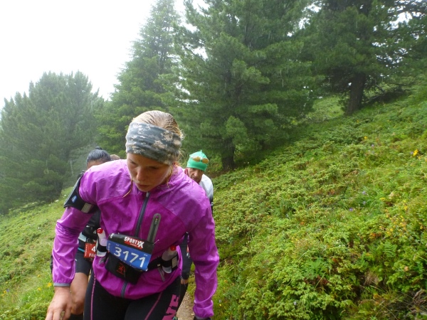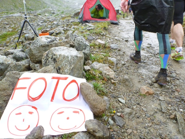Eine Frau spricht mich an, fast verzweifelt, weil sie nicht weiß, wo genau sie ist. Mich hat sie an den Blumen erkannt und aufgrund meiner Reporterarbeit. Sie glaubt, dass Chants noch kommen muss und sie hat eine Befürchtung, dass sie das Zeitlimit nicht schafft. Als ich sie aufkläre, dass Chants weit zurück und die Keschhütte in wenigen Minuten zu sehen sein muss, schaut sie mich mit offenen Mund an. Ja, Sachen gibt’s.