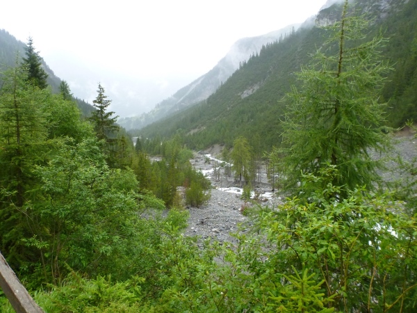 Am Ortsende unterqueren wir die Bahnlinie, die zum Albulatunnel hoch führt. Wir halten links in das Val Tours. Von hier aus sind es noch rund 1200 Höhenmeter zur Keschhütte. Oben wird es nur rund fünf Grad haben. Und Nebel auch, so wurden wir beim Start informiert.