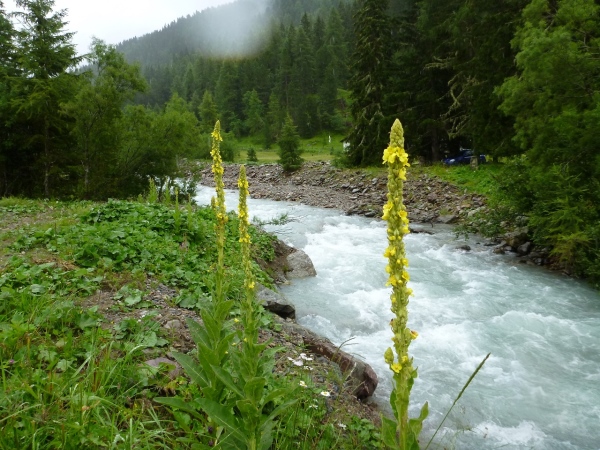 Nach einigen Minuten zeigt ein blaues Schild uns Kilometer 30 an. Ja, hier ist es anders, denn es wird rückwärts gezählt. Und es wird auch nicht jeder, sondern jeder fünfte Kilometer angezeigt. Zwei Kilometer weiter endet die Zivilisation in Chants (1822 Meter). Hier entsteht der Toursbach (Ava da Tours) aus dem Zusammenfluss von Ava da Ravais-ch und Ava da Salect.